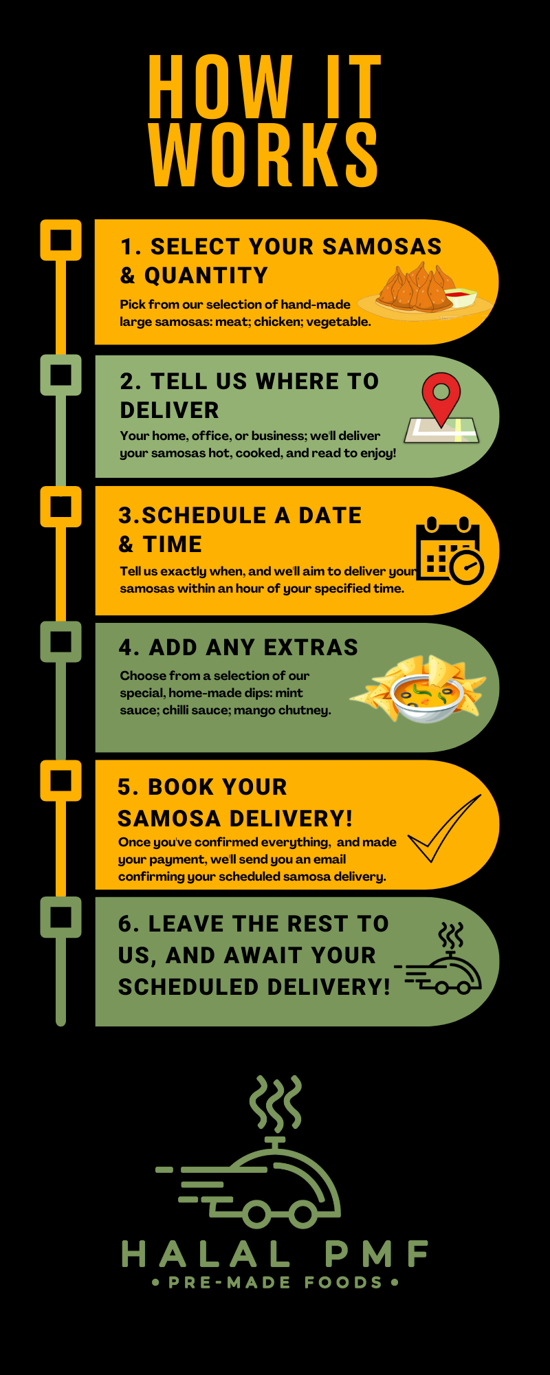 Contact us to have a consistent scheduled order of our handmade frozen Samosas delivered to you.